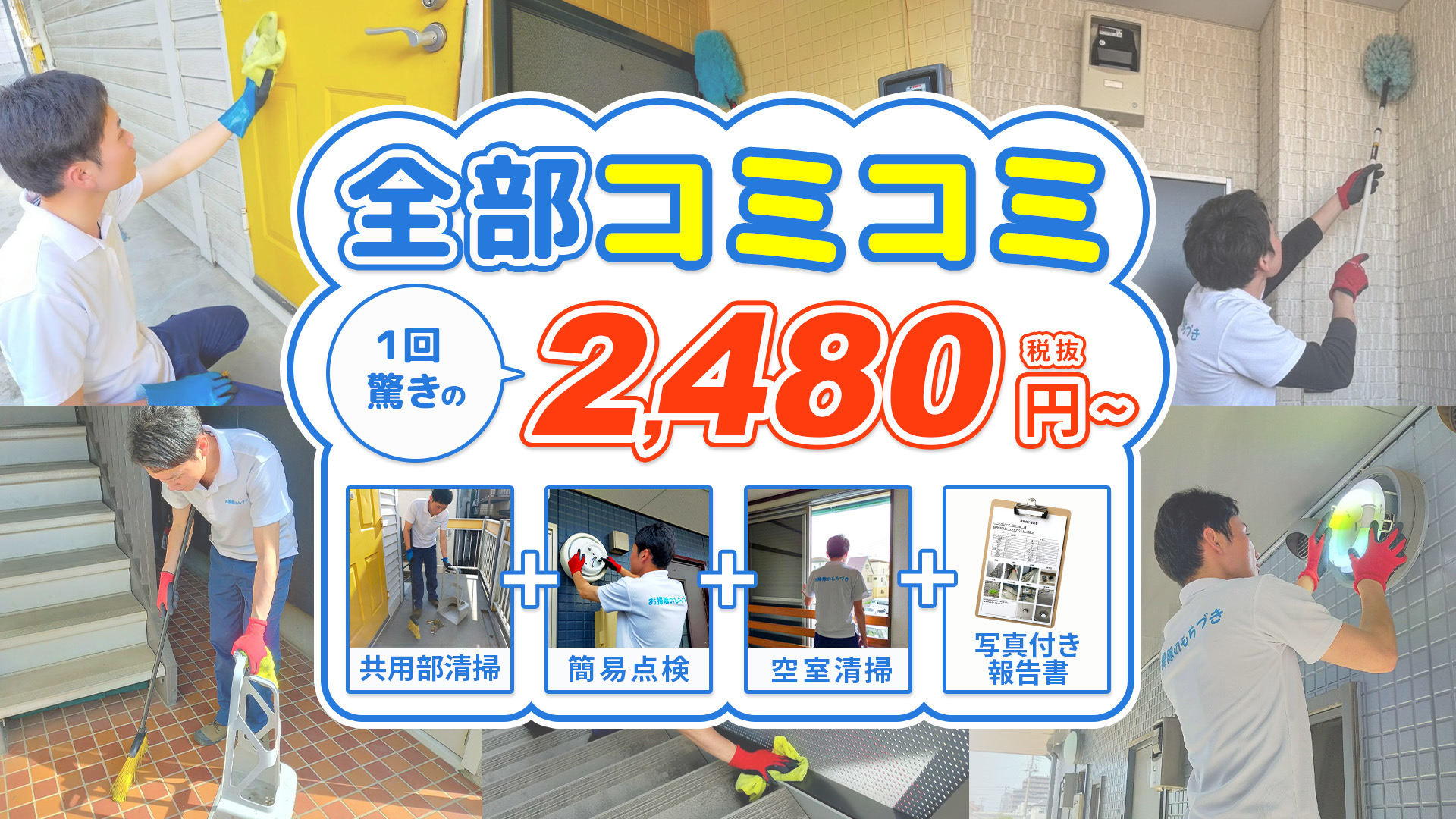 アパート・マンションの共用スペースを清潔に保ち、入居者様に快適な環境を提供します。