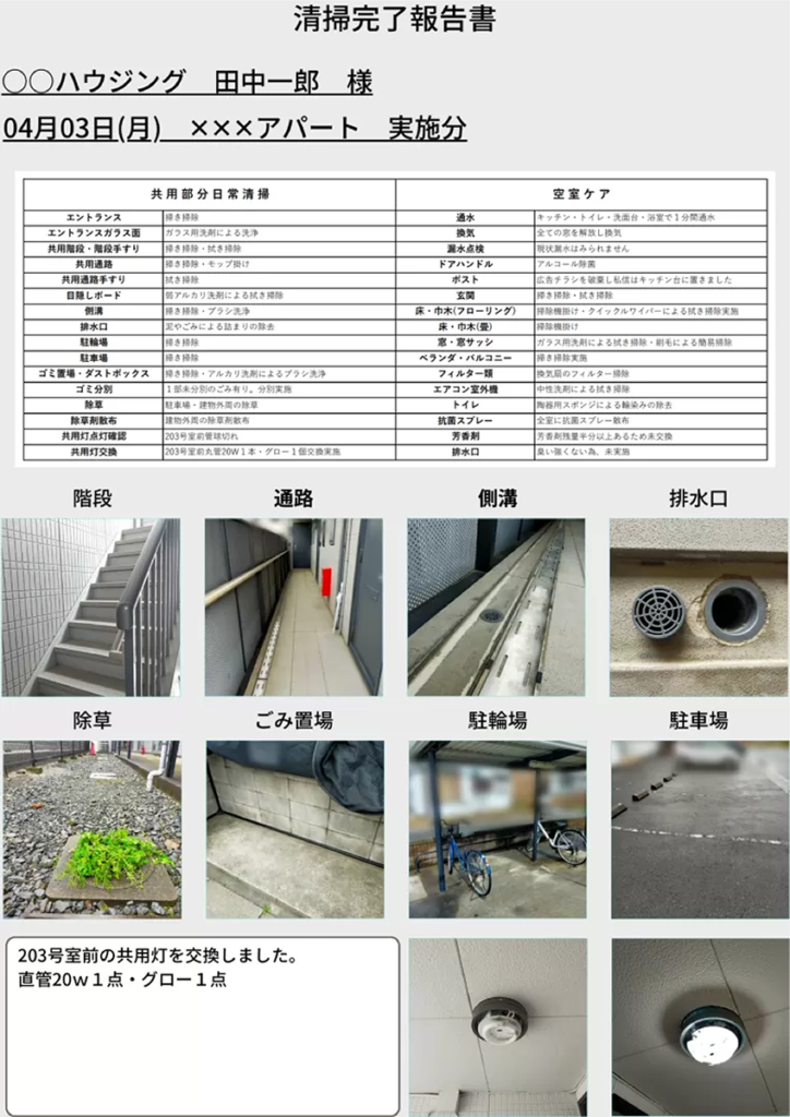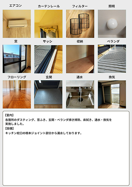 - きちんと清掃してあるか、写真付きで報告書が欲しい